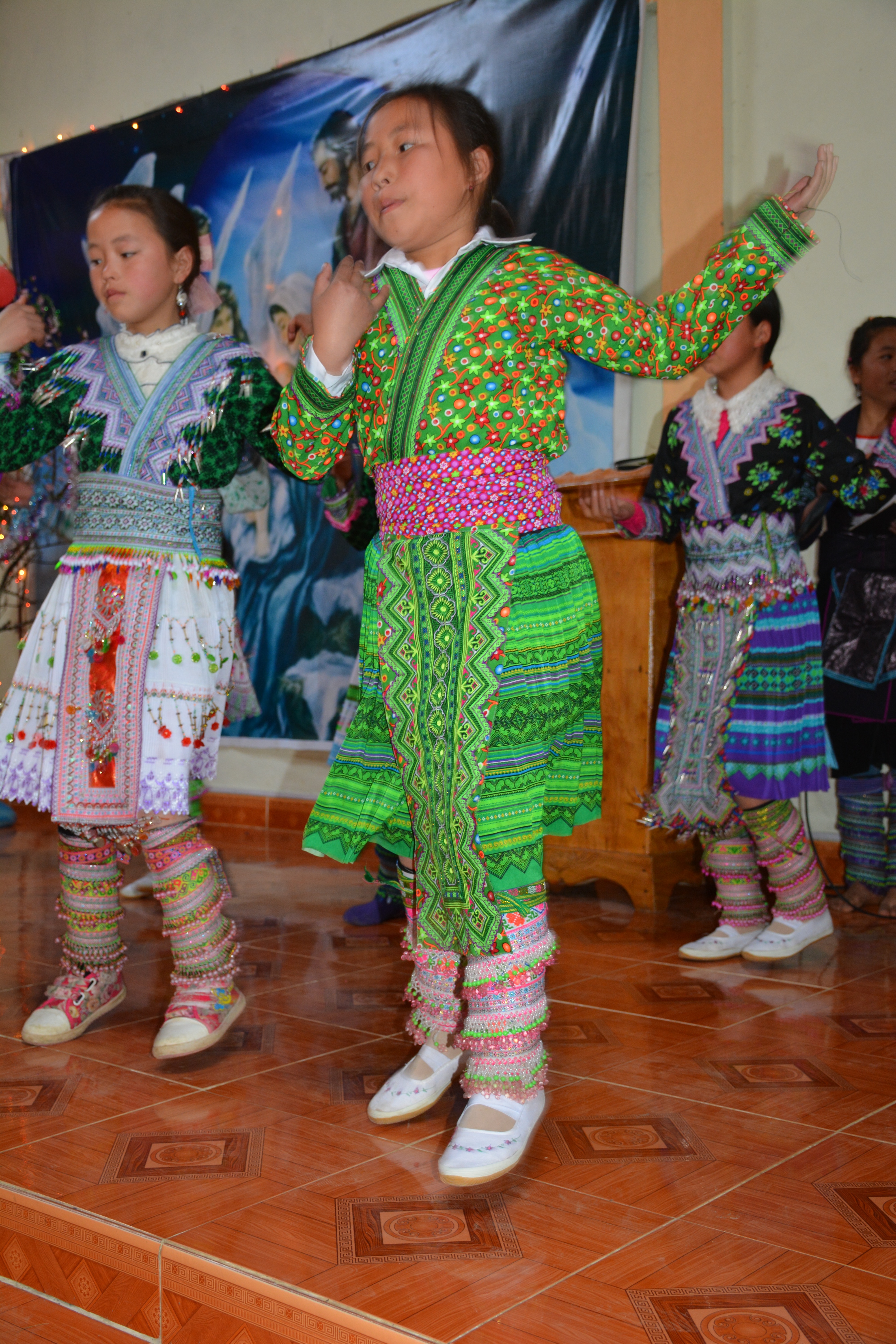 On the day we were there, hundreds of children gathered in traditional dress inside the building.
