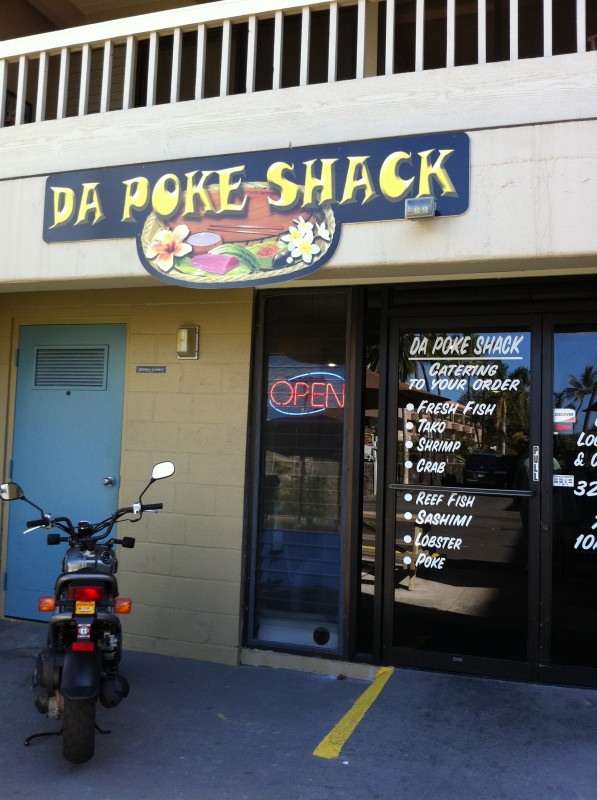 We walked lots this weekend, on Saturday we walked to Target and back, about 9 kms round trip. Then on Sunday from Living Stones Church to Disappearing/Magic/White Sands Beach at La’aloa Bay Beach Park and back to University of the Nations, almost 10 kms. Glenda has volunteered to help out in the nursery for the 9am service so we went to the 7:30 service (they have 5 services on Sunday and so far I have been to three of them). The beach visit was my reward for hours of shopping on Saturday :-). I got to use my snorkel, mask and fins for the first time since arriving a month ago. It was not a good snorkelling venue, but I got some exercise and I did see a dozen or so fish and I was able to swim along with a turtle below me which was fun. Another first was wearing swim shorts to church. We stopped on the way back at Da Poke Shack for lunch, it is pronounced po-kay, it is Hawaiian sushi.